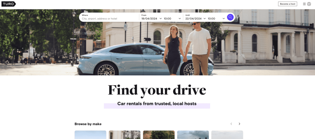 Turo is the world’s largest peer-to-peer car-sharing marketplace. It allows people to rent cars from local owners instead of traditional rental companies.